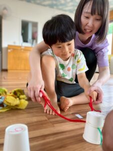 中には1~5の数字が書かれた紙コップバージョンもあり、数字の理解を深めると同時に目で数字を探す力はビジョントレーニングにもなります☺