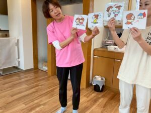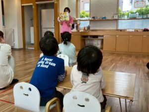 今回はこの紙芝居と「おかしもち」の標語の確認と実践(訓練)を行いました。