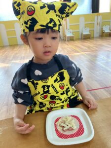 この日は餃子の皮をを使った、餃子の皮ピザ作りを行いました。