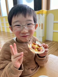 餃子の皮でピザできるの?デザートも作るの?とわくわくの子どもたち。